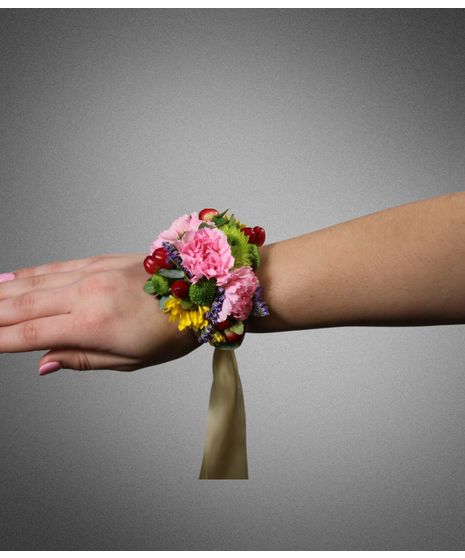 A corsage can be worn on the wrist or pinned to the left side of a dress or blouse, ideally above the heart. If wearing a wrist corsage, place it on the non-dominant hand for comfort and ease. Pin-on corsages should be securely attached to avoid movement while being worn.