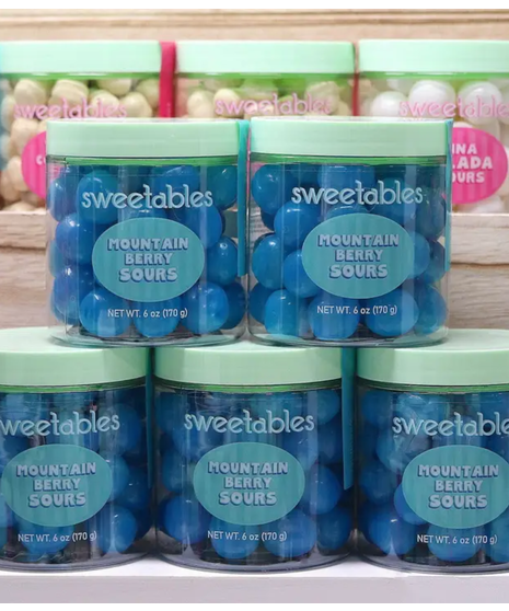 Sweetables gourmet candy jars come in a variety of different flavors. Some sour, some savory, and others sweet!